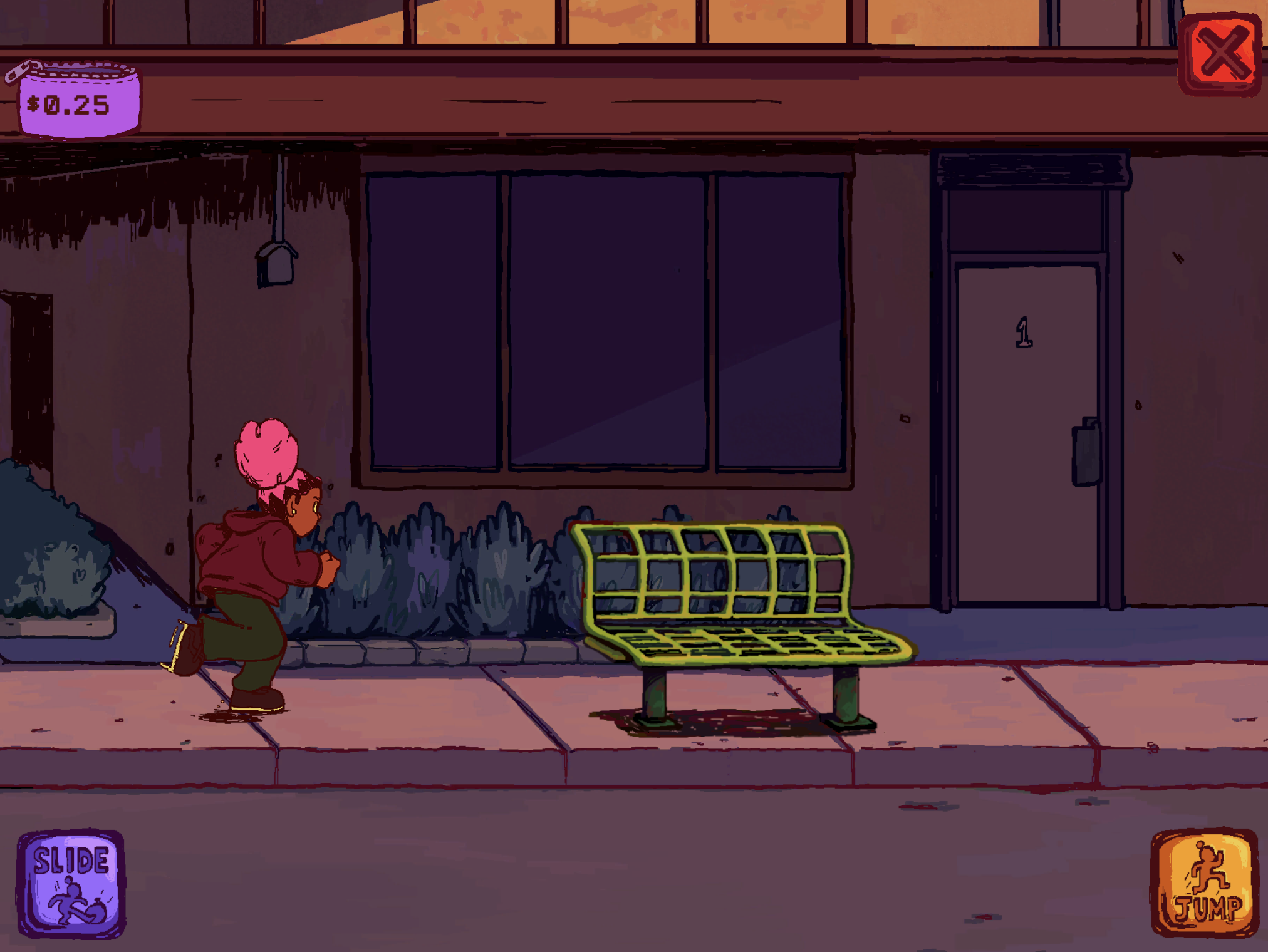 Running through garage-day streets and past family-owned storefronts, the player jumps, slides through obstacles while collecting fare and momentum. The bus remains just out of reach.